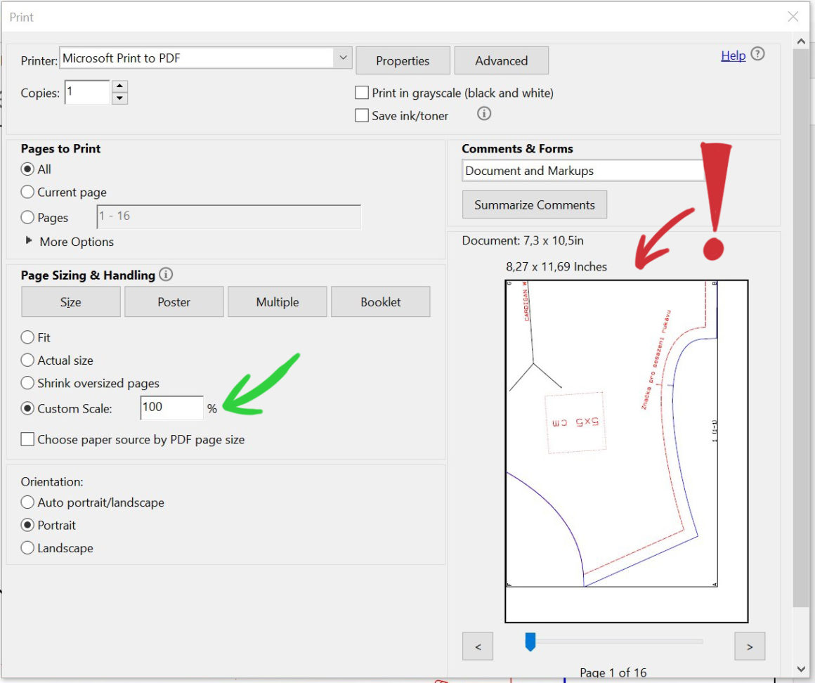 It is very important not to change the size or aspect ratio of the page when printing it. You should set the print scale to the 100% in the dialog window or check the "actual size” setting. This ensures the right scale and shape of the print.
