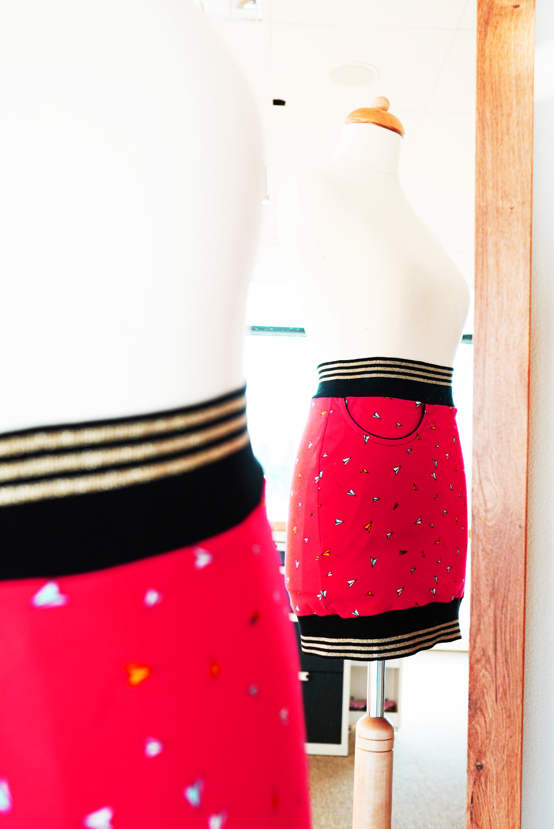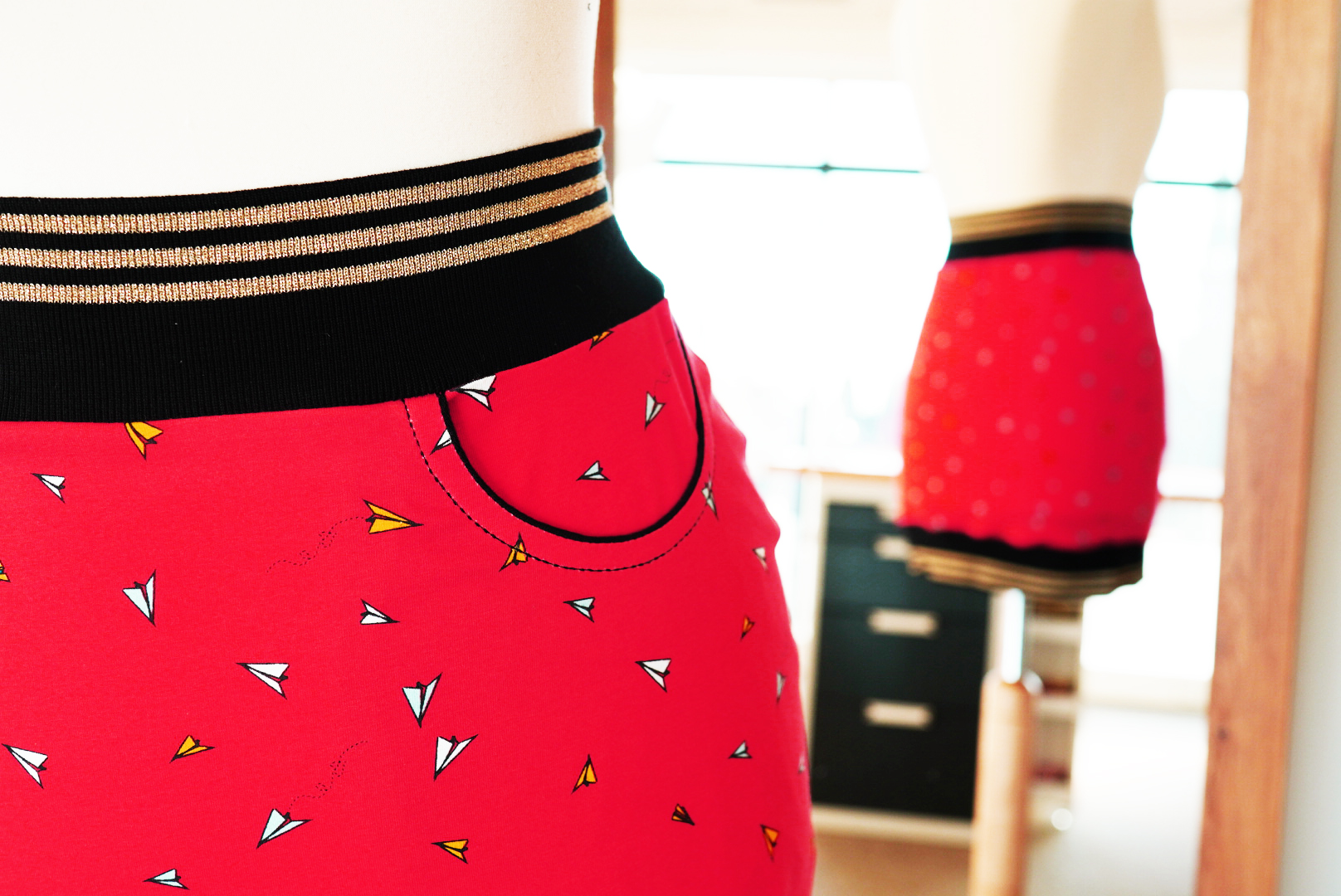 In this article, we will look at how to sew a very simple skirt with pockets and knit hems. This pattern is suitable for intermediate sewers and beginners (who already know how to sew knits).