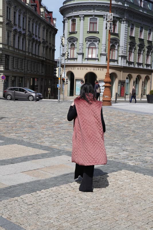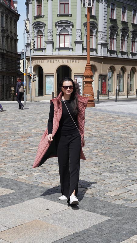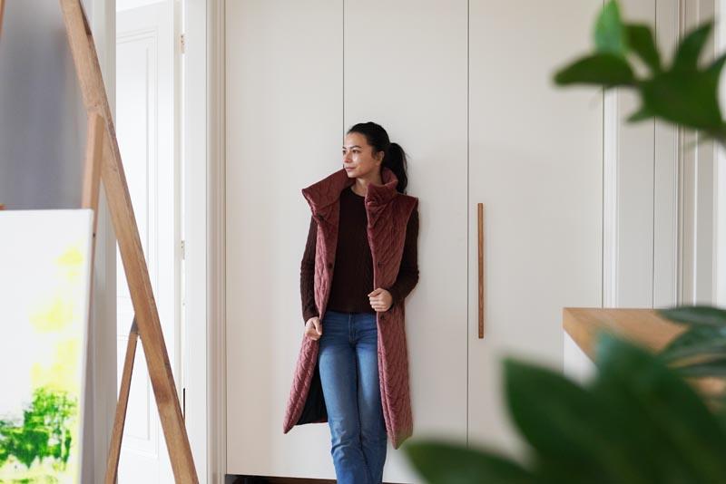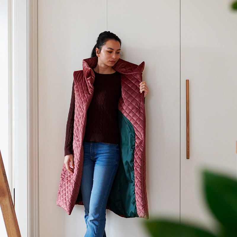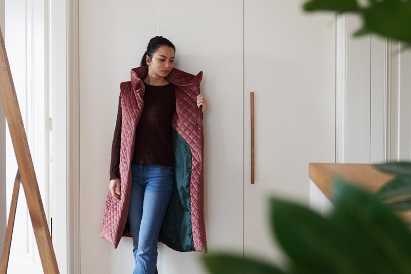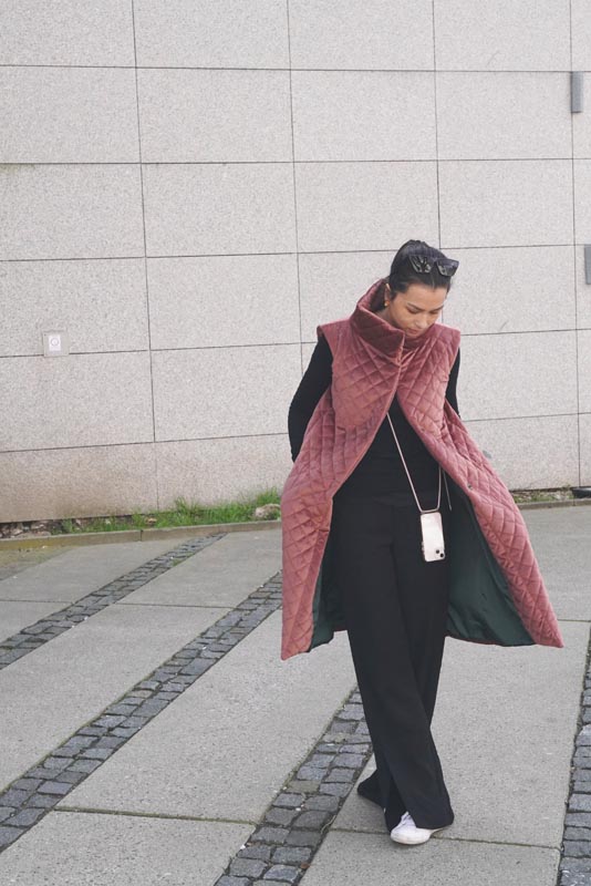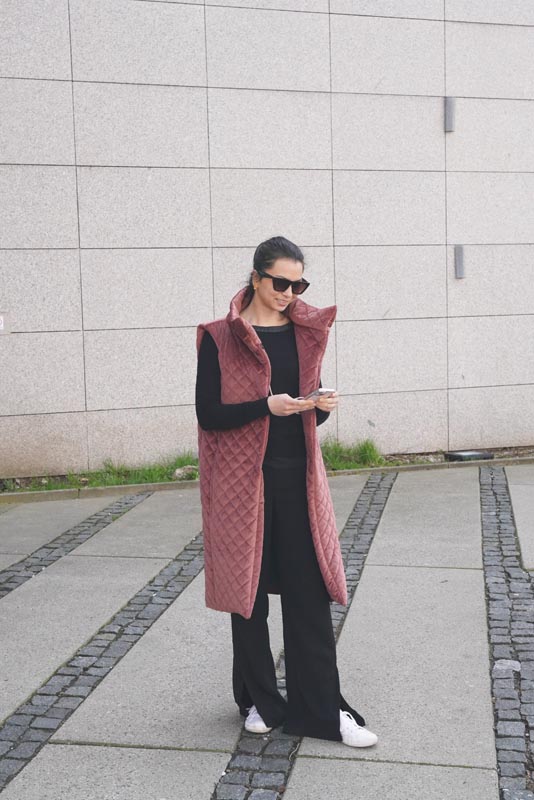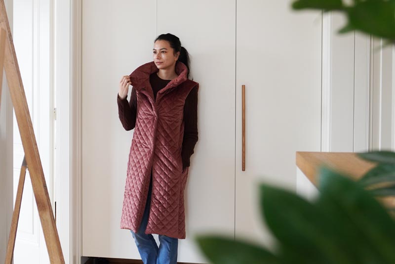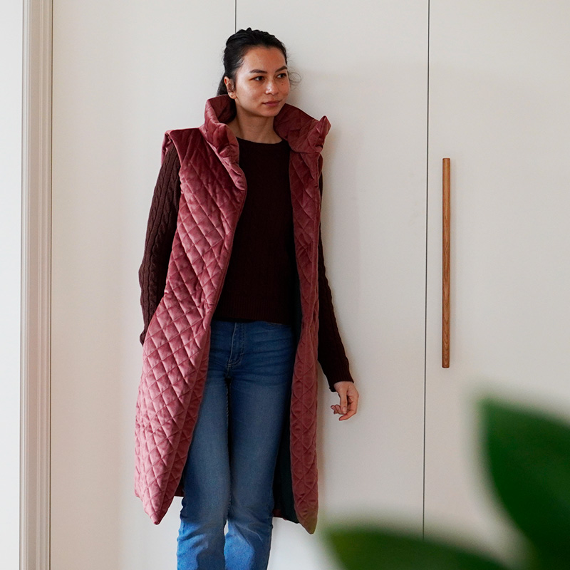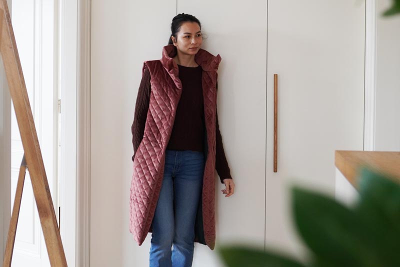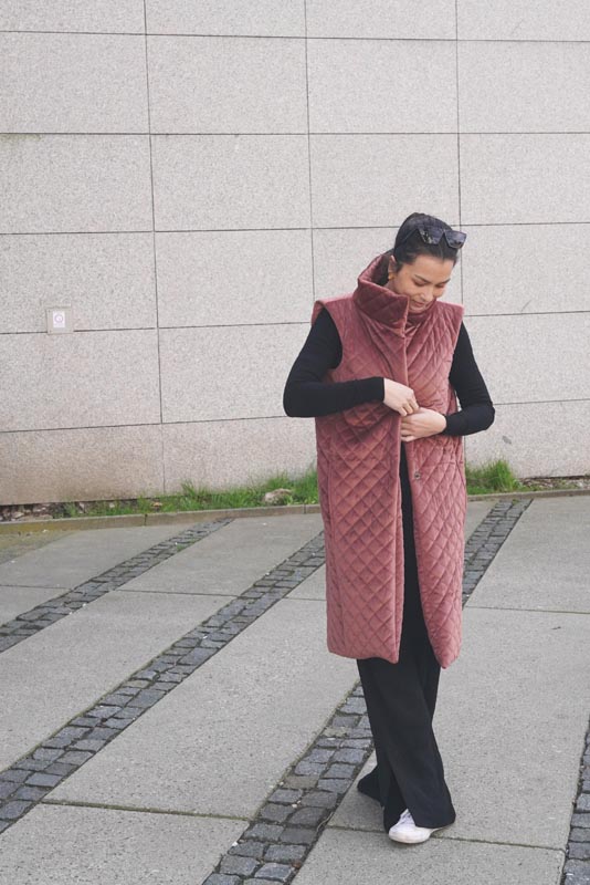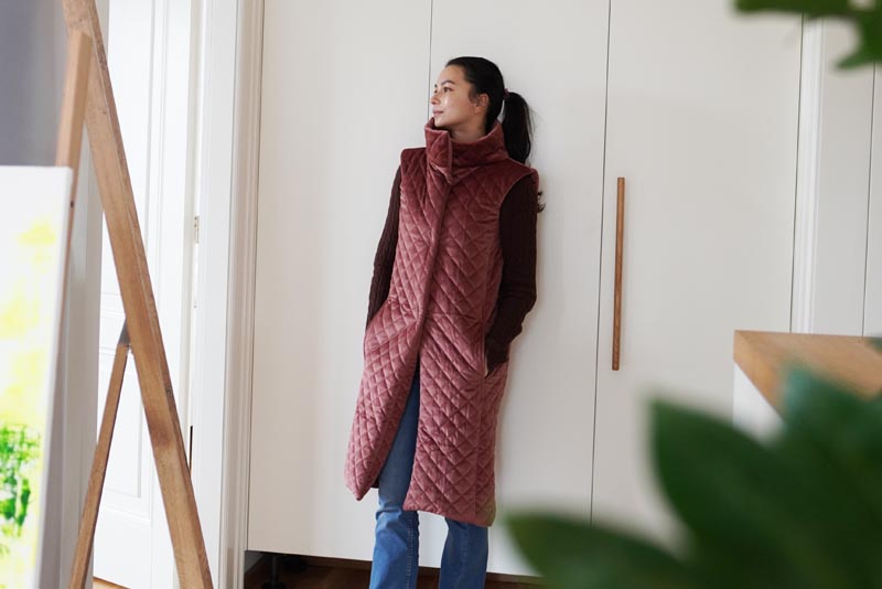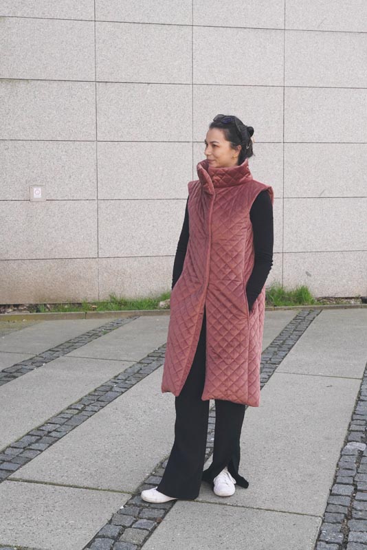 The sewing pattern of the women's vest is intended for thick woven fabrics such as e.g. coat fabrics (tweed, fleece, boiled wool, etc.)