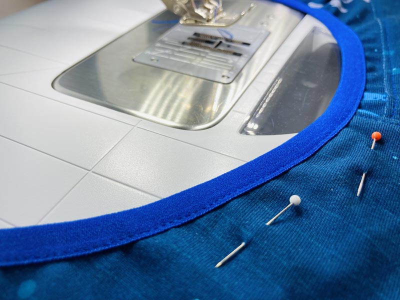 Let's work on the neckline hem. If you don't know how to do it, watch this video:
