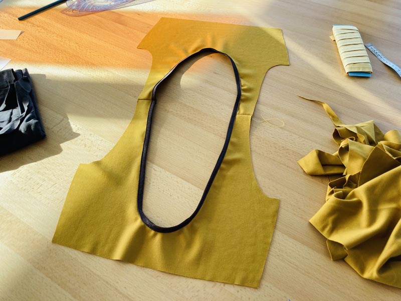Place the pieces back on top of each other (right side to right side) and sew the second shoulder seam.