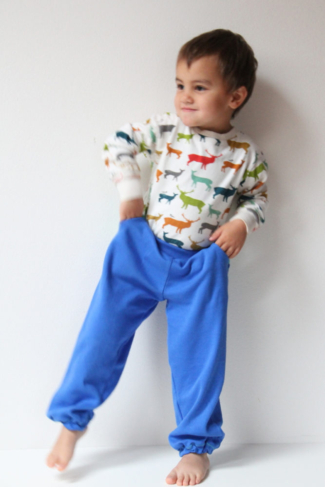 Today we will look at how to easily sew sweatpants with side pockets and yoke. This pattern for kid’s sweatpants is suitable for beginners and it’s available in sizes 80-164.