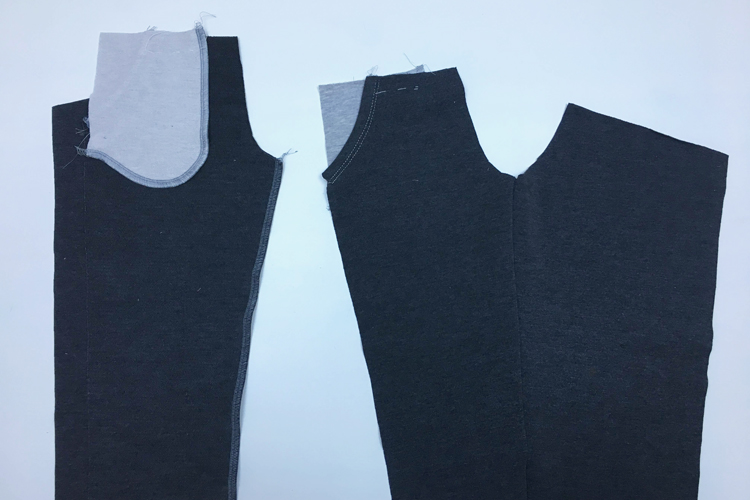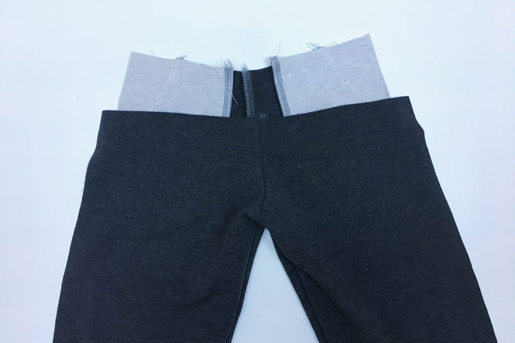 When using this procedure, sewing a yoke may seem a bit complicated, but it’s the correct way to do it. Therefore, please follow the steps below, even though these steps are in a different order for sweatpants without yokes.