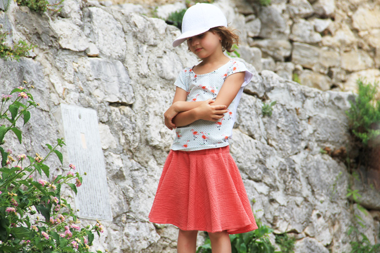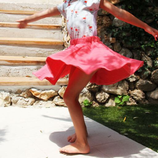 Hooray! That's what your girls will scream with excitement when they put this skirt on for the first time, it's so flowy and you can twirl it around! And you'll be thrilled too because you can download this skirt pattern for free! Girls' skirt JUNE is basically a circle skirt and is made up of four parts (+ waistband), so it is easy to sew, looks nice, and is comfortable to wear.