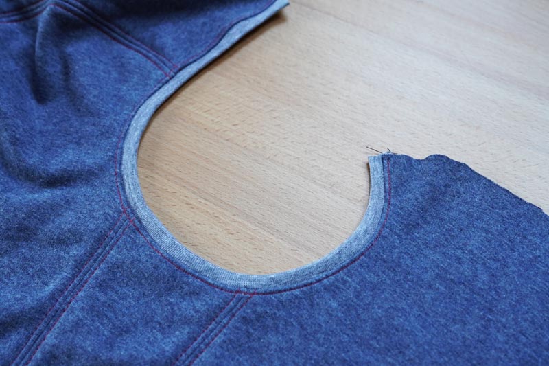 If you have topstitched all the previous seams, you should sew topstitching around the face opening hem as well.