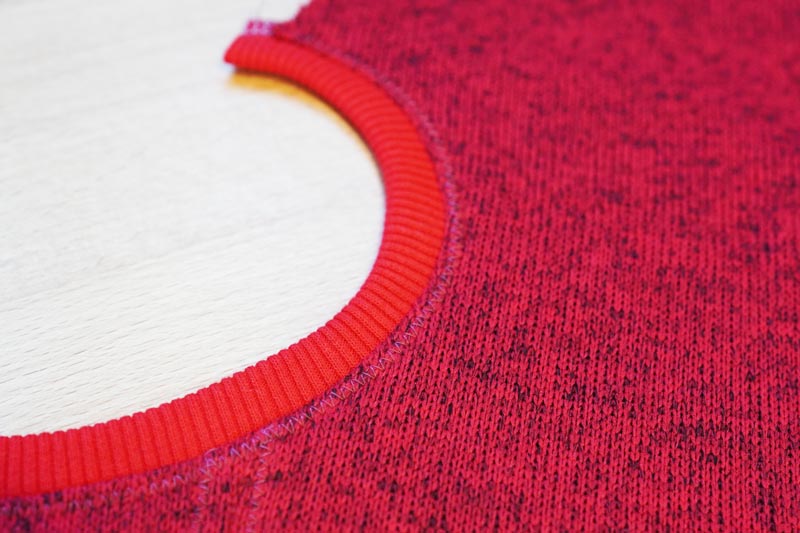 I recommend finishing the bottom hem with a wide zigzag stitch (or serger). Of course, you can finish the bottom hem in the same way as the face opening, or by folding to the inside of the balaclava and topstitching it, but in that case, be very careful not to deform the hem.