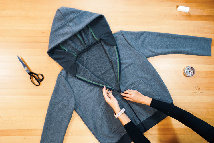 Close the zipper again and mark the location of the pocket seams and the seam of the bottom hem. These marks will help you maintain the symmetry of the sweatshirt.