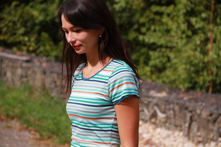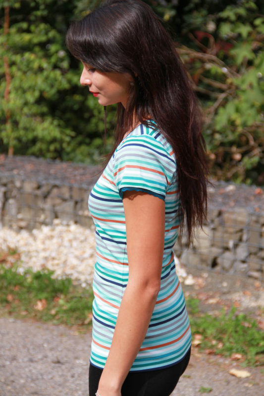 I designed a simple pattern for a women’s close-fitting T-shirt with modern ultra-short cap sleeves. The T-shirt is great for ladies who like to wear tight tops, but also for athletes because you can use stretchy sports fabrics. Yoga, anyone? :)