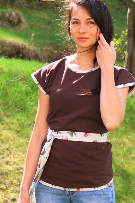 ![JAK UŠÍT TRIČKO S PŘINECHANÝMI RUKÁVY - VERZE S VÁZAČKAMI a širokým spodním lemem]()