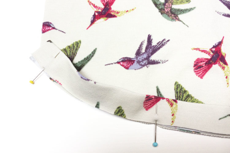 Now pin the side seams. Remember that there are slits at the bottom of the side seams. You can mark the tops of the slits more prominently so that you don’t accidentally sew them shut.