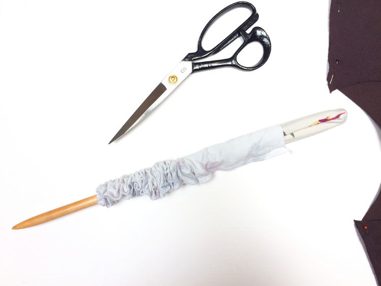 When you reach the edge of the fabric, sew two more stitches outside the fabric by hand (using a hand wheel).