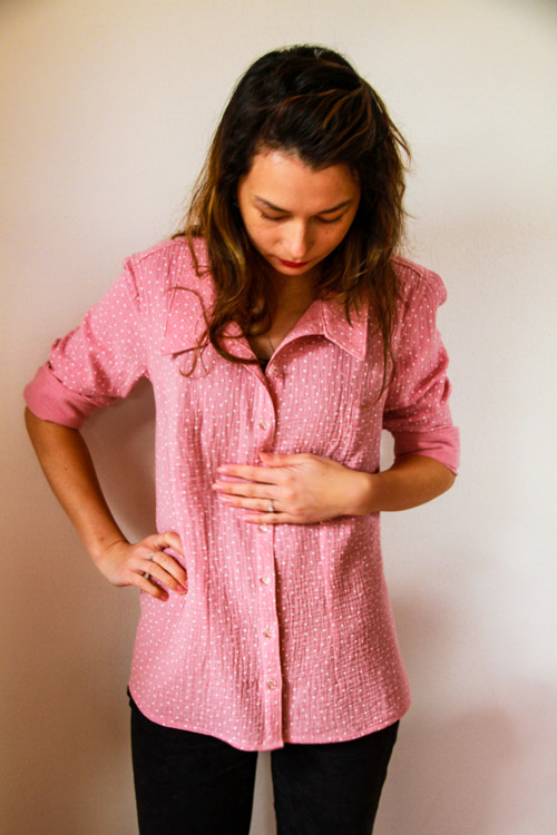 And then you just need to sew the shoulder seams and the torso of your shirt is almost ready.