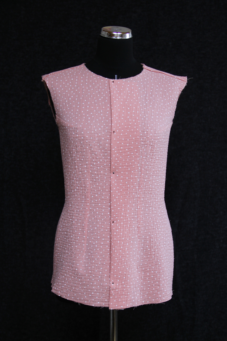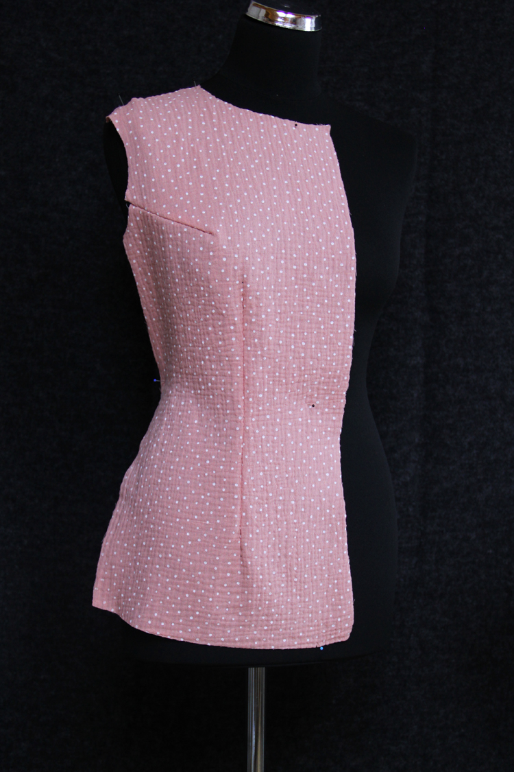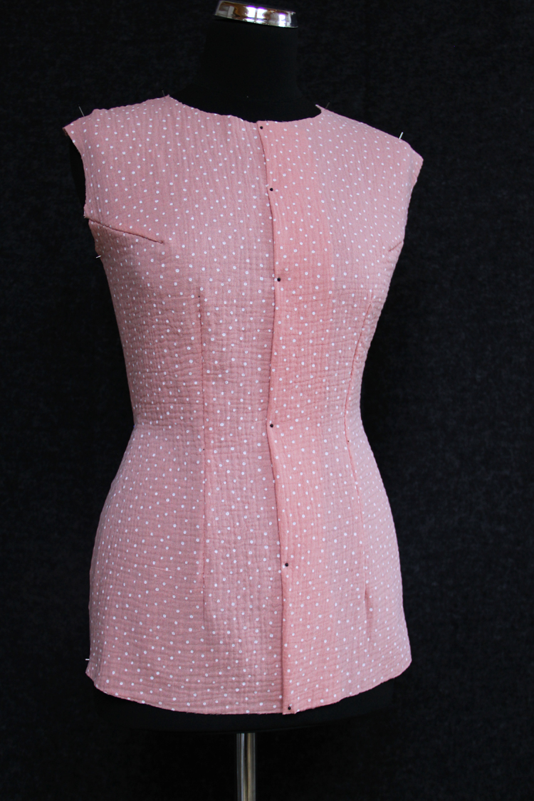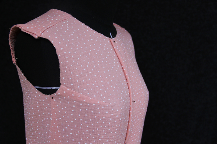 The next photo shows that I have already stitched some parts. If you do not have much experience with sewing, I definitely recommend temporarily stitching all the darts and marking their tops with pins. This will allow you to clearly see where the dart ends or begins, and your seams will be positioned correctly.