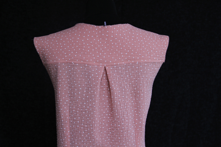 If everything looks good, you can sew the darts. Then work on the back piece - create a pleat first. You can see that my pleat is reversed. I prefer it this way. But it's subjective, it's up to you what pleat you make on your shirt.