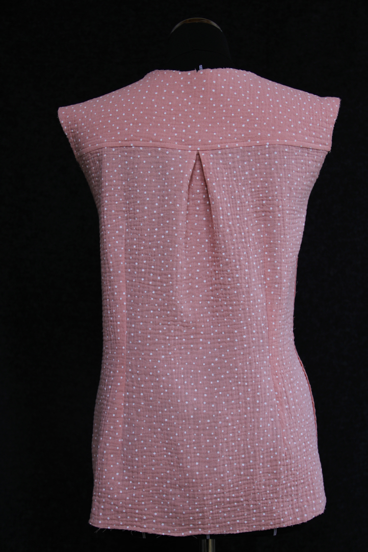 My front pieces are reinforced, breast darts and waist darts are stitched. At this stage, it's a good idea to try to “put on” the front piece(s) to see if the darts are more or less well placed. It's just a quick check.