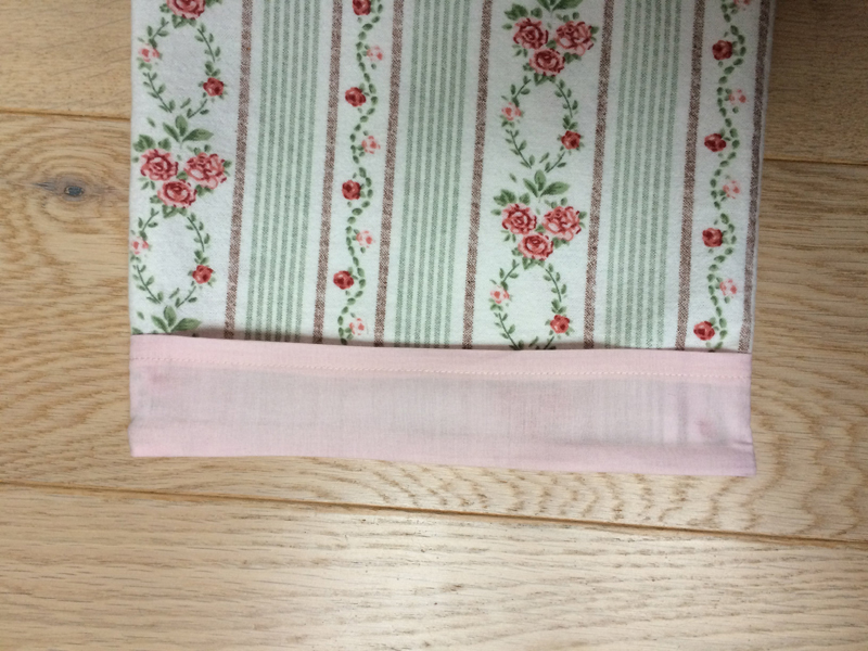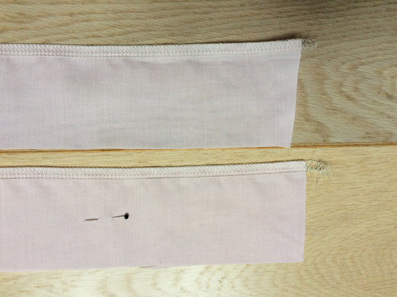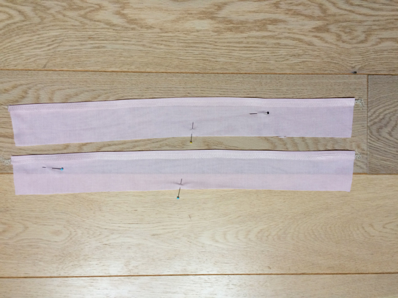 Sew the shorter sides of the cuffs, then fold the top 1 cm / 0.4" to the wrong side and iron the cuffs.