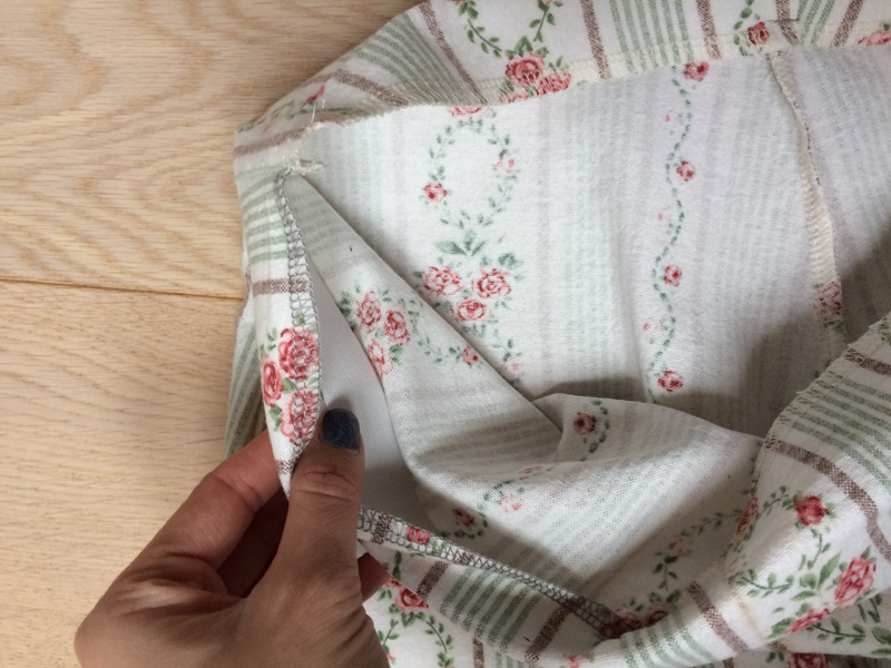Sew around the waistband to close the “tunnel” with the band inside. Be careful not to sew through the band itself.