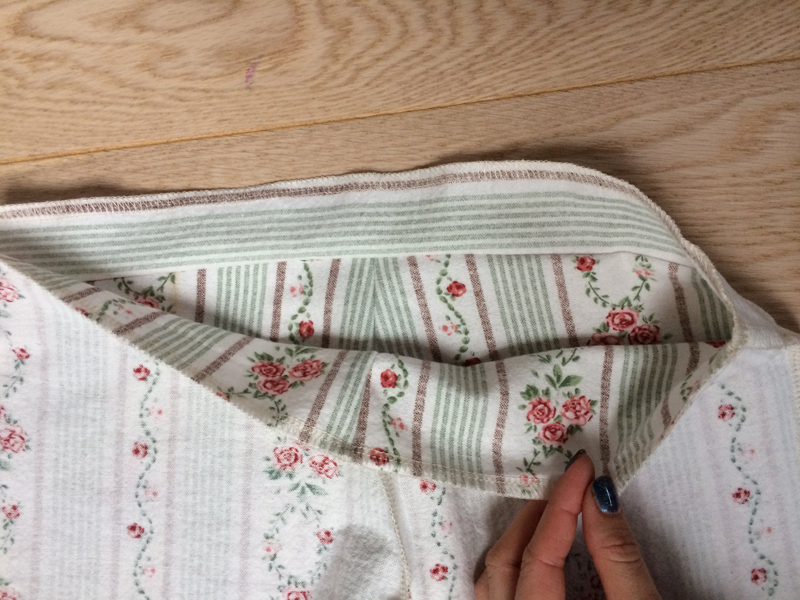 Clean the waistband with an overlocker (or zigzag stitch).