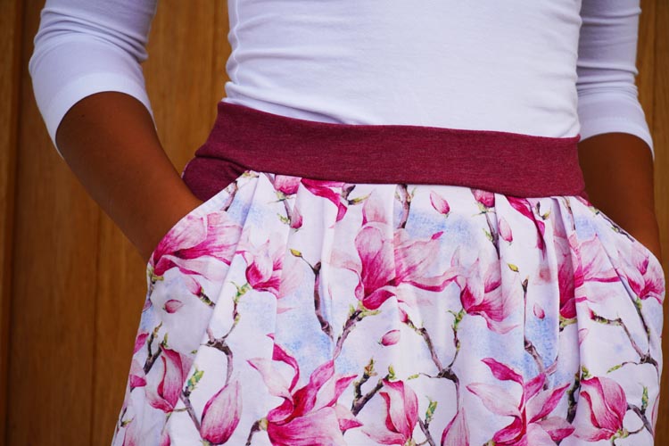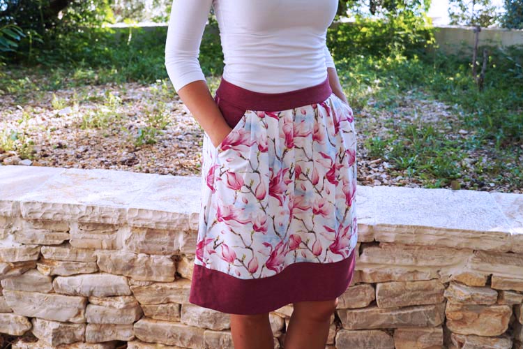 I've prepared a new pattern for women's and children's skirt and, of course, detailed photo instructions on how to sew the skirt step by step. The pattern is easy to work with and versatile, so I can recommend it to intermediate sewers. The skirt has a prominent bottom hem, contrasting waistband, and side seam pockets.