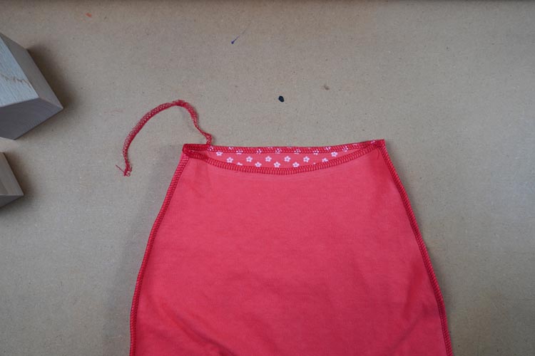 You can now close the opening of the tunnel. Alternatively, leave it open (if it is only small) so you can easily adjust the elastic band as your baby grows.