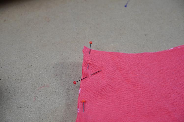 Overlay the pieces again. Front piece rests on the back piece (face side to face side). Pin the instep seam.
