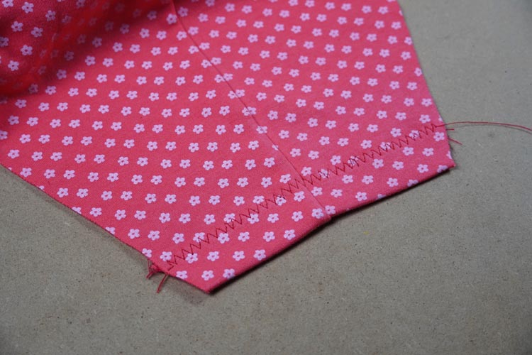 Then clean seam tabs of the legs and fold them to the reverse side. Press the seam allowances of the side seams towards the back piece.