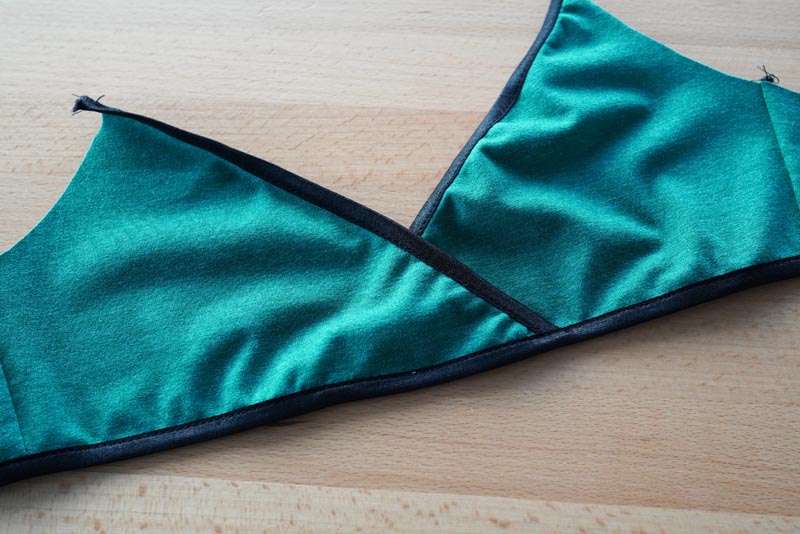 Now I recommend putting the bra on your body and assessing the distance between the cups. Some women have their breasts close together, others further apart. If your breasts are further apart, reduce the size of the overlap, if they are closer together, overlap the cups a bit more.