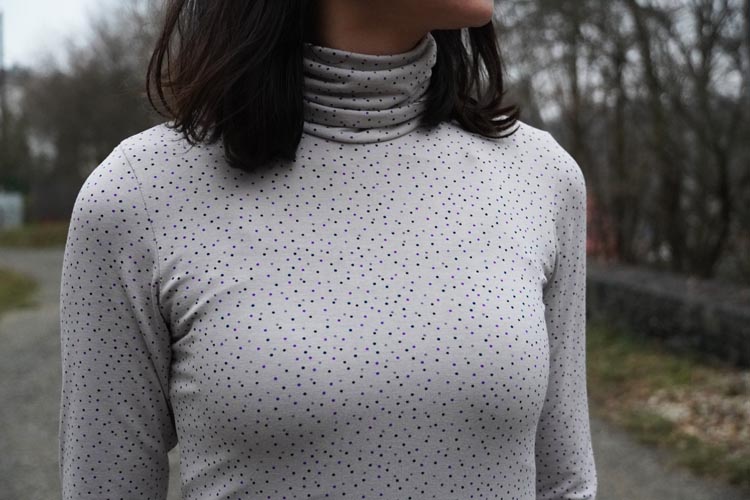 - Those are very thin - great for an autumn turtleneck or turtleneck to wear with a shirt or blouse. You can go with a smaller size of the pattern (if you are between two sizes) thanks to the high elasticity of viscose knits.