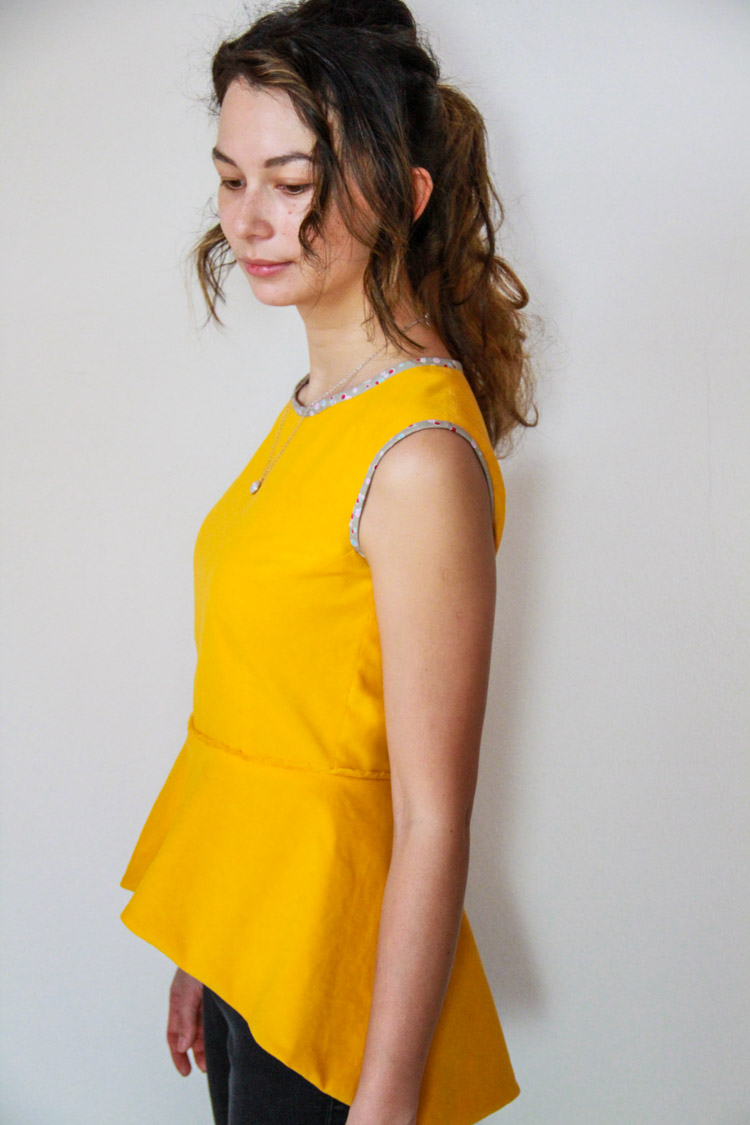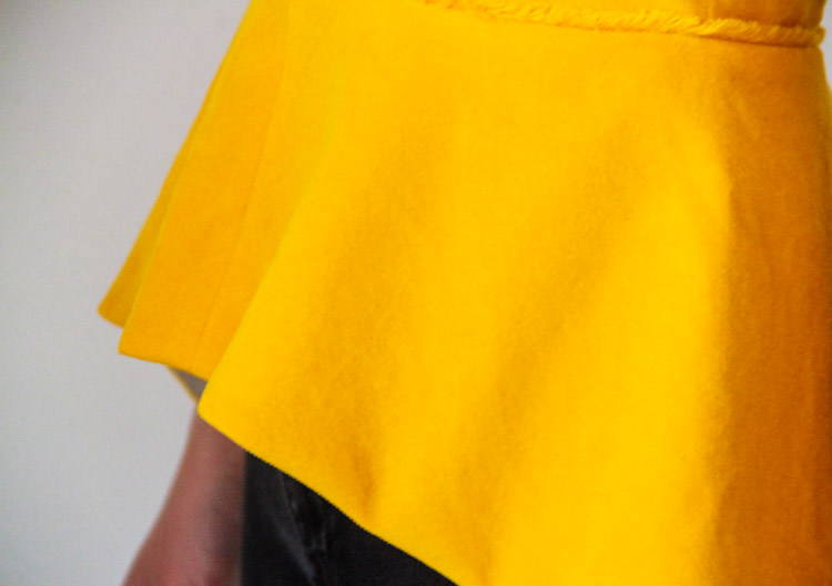 This pattern is designed for medium woven fabrics such as needlecord. I bought my needlecord at Dumlatek.cz, here: Needlecord - Bright yellow You can also use light denim, suit fabrics, shirt fabrics, etc.