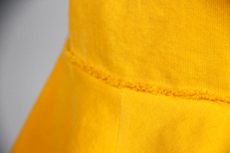 Now you have the option to sew a decorative piping/brush fringe trim directly into the waist seam. This is a purely decorative thing, if you don't like it you can simply skip this step altogether.