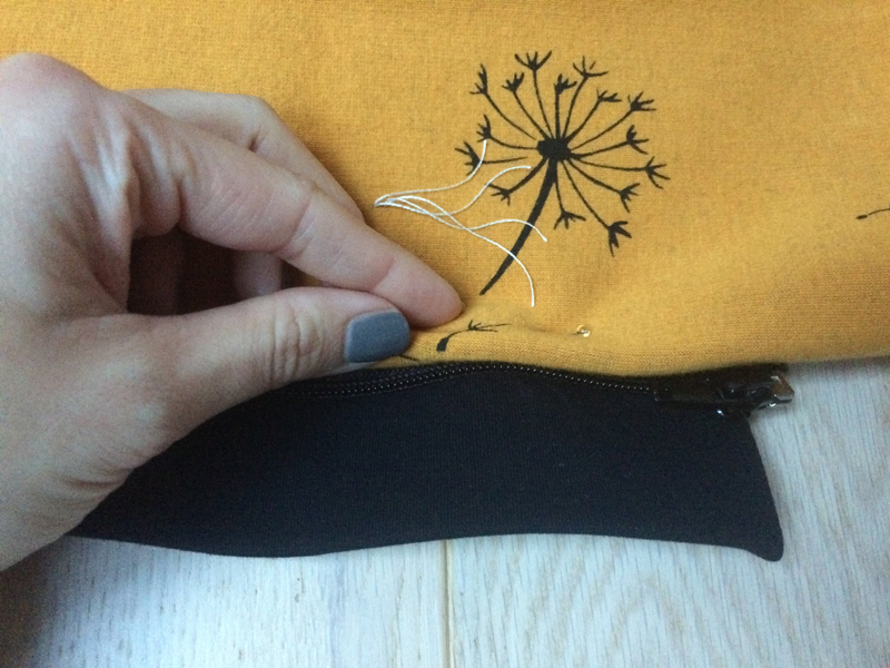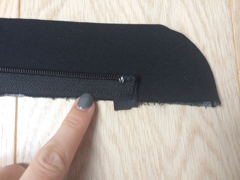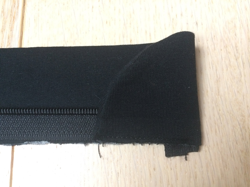 Fold the top of the underlap over the top of the zipper and sew it in place.