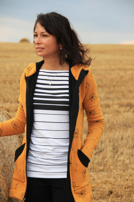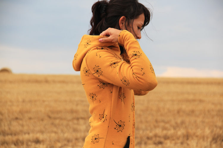 My tip: You can easily sew the sweatshirt without an overlock machine, just follow a few simple rules outlined in this article: Sewing elastic fabrics with a regular sewing machine