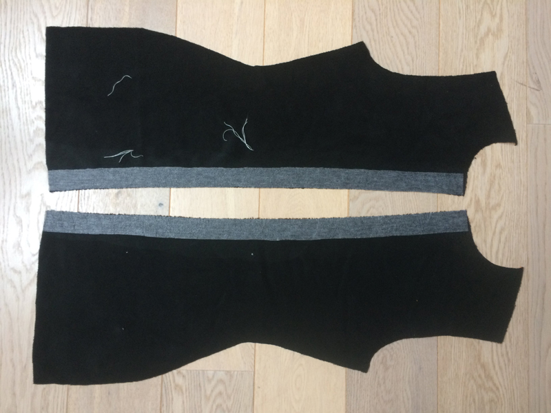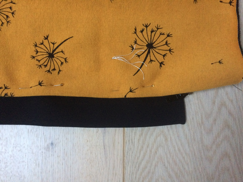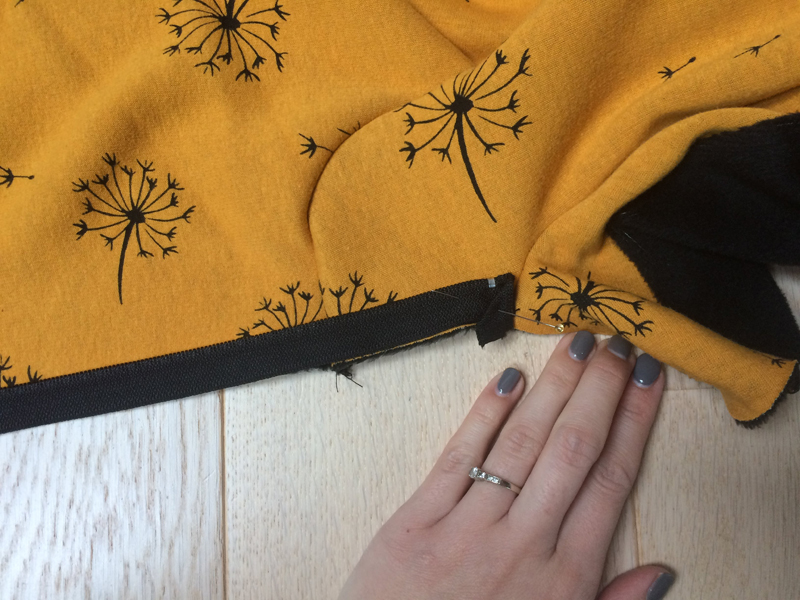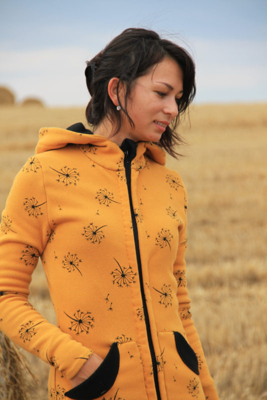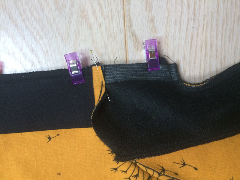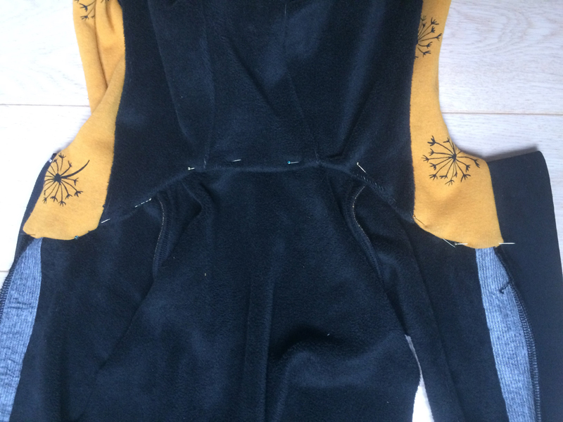 Pin the pockets to the front pieces (fold their edges to the reverse side if you want to hide them). Now you can simply sew the pockets to the front pieces. You can use your sewing machine but I recommend doing this by hand if you are using some kind of “unruly” material (warmkeeper, sweater knit, etc.).