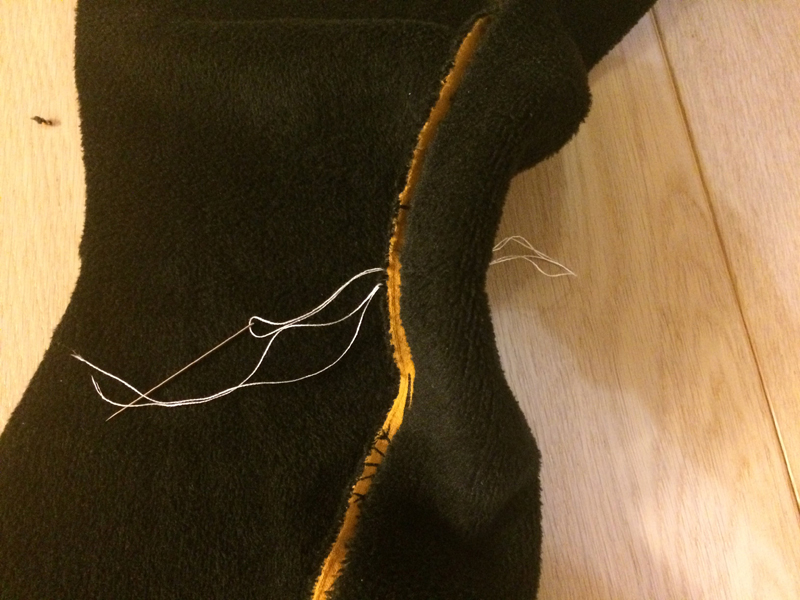 Sew the lining pieces together. (Just to be clear now - my lining is made from primary fabric and I’m using the “furry” side as my face side and side with print as the reverse side.)