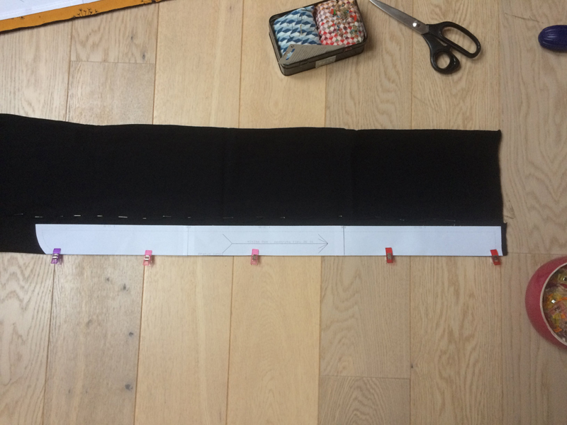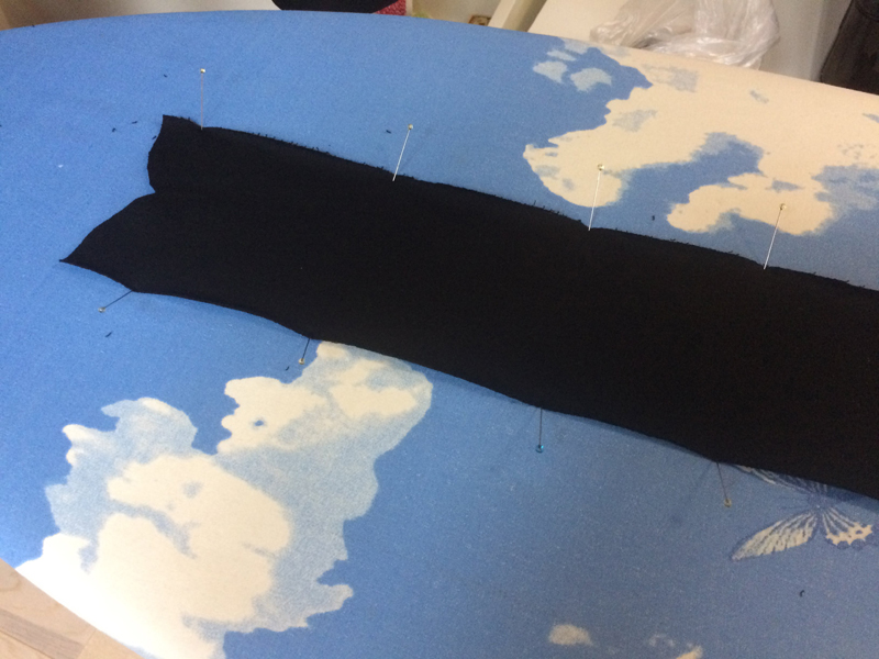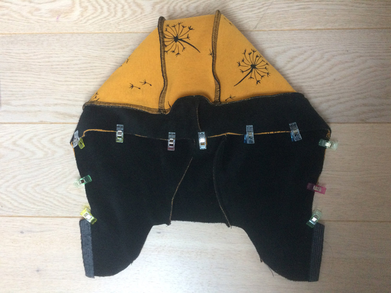 Fold the edge of the hood facing to the reverse side (as shown below) and pin it there.
