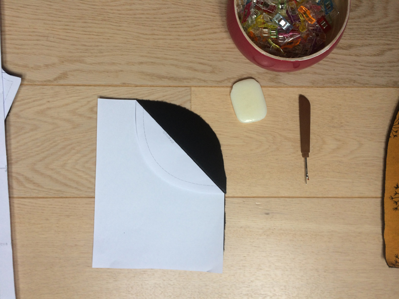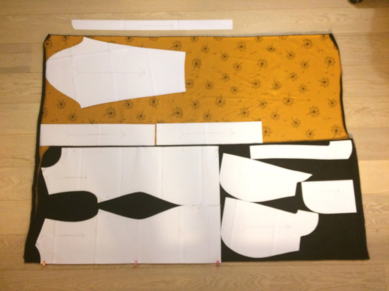 Now is the time to sew in the sleeves. Pin the top of the sleeve cap (marked in the pattern) to the shoulder seam. Then pin the corner of the sleeve cap to the corners of the armscye and finally pin the rest of the sleeve cap. Sew the first sleeve to the bodice and work on the second one in the same way.