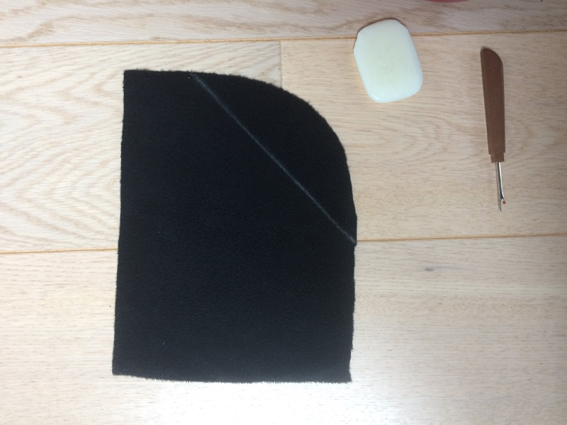 Pin the hood crest to one of the hood pieces (face side to face side) and sew the pieces together. Add the second hood piece to the other side of the crest.