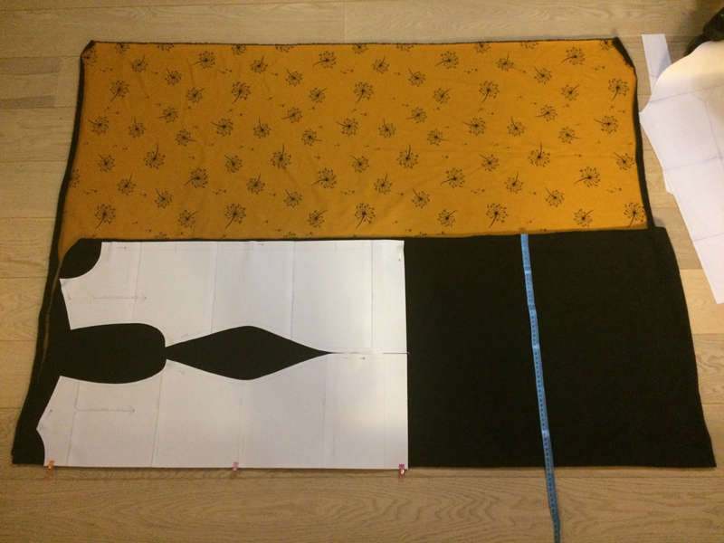Fold your fabric in half and place the back piece on the fold, then position other pieces.