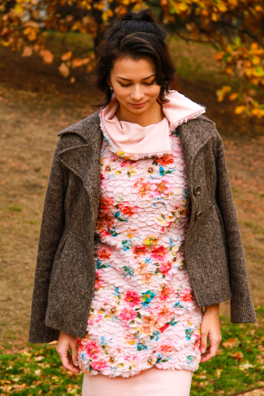 You will also need a one-sided fusible facing to reinforce the collar and pockets. I didn’t use shoulder pads, because my faux fur is quite heavy (so it does not protrude over my shoulders) and I did not want the dress to look too formal. Quite the opposite.