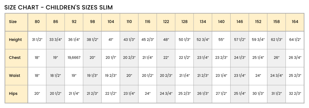 - Patterns for children’s panties are constructed in a professional program for clothing pattern development and they are available in sizes 80 – 122 and 128 – 164 (find size charts below). You can choose from different variants of panties and decide between version CLASSIC and version SLIM (for skinny kids).