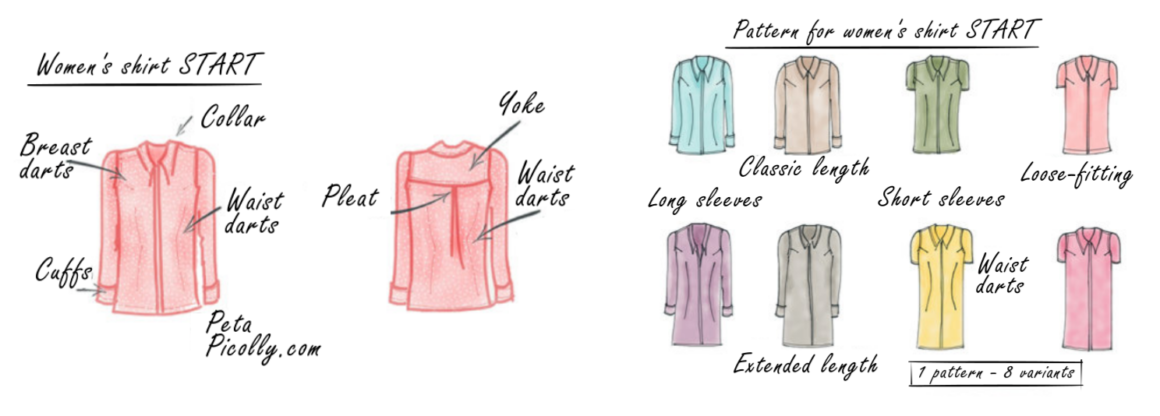 You can use this pattern to sew at least 8 variants of the shirt! :)