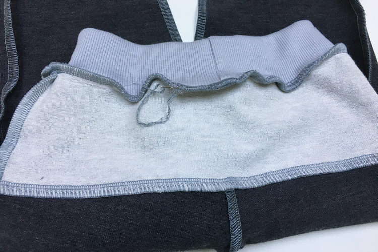When sewing the waistband, I recommend having the sweatpants turned inside out and sewing “inside” the waistline.