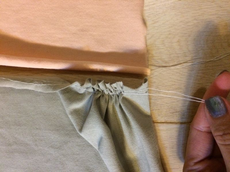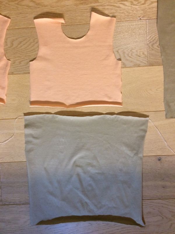Continue until the upper edge of the skirt is the same width as the front and back bodice pieces.
