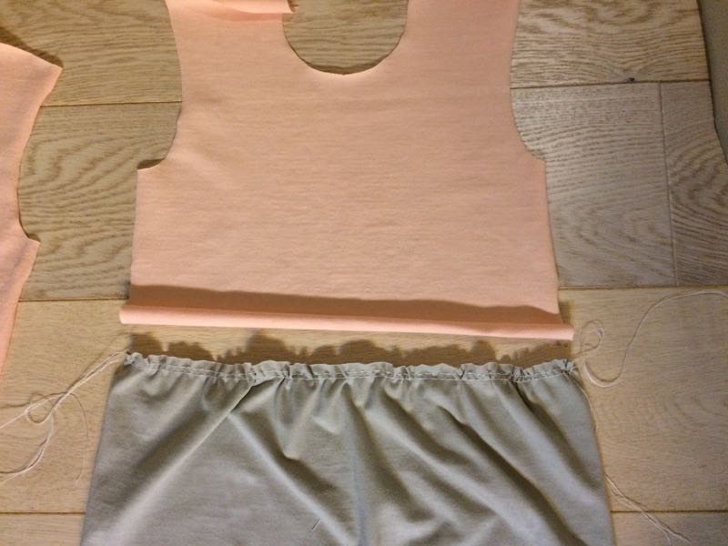 Sew one part of the skirt to the front part of the bodice and the other to the back part (face side to face side).