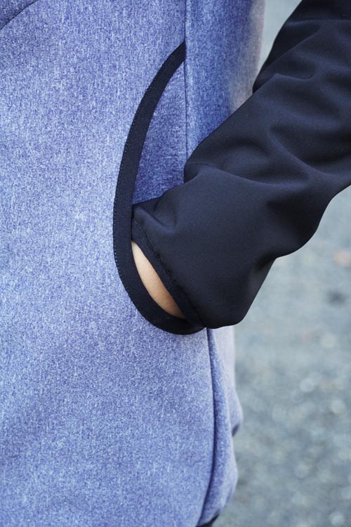 I show the technique on the dress, but you can also use it when sewing a skirt, pants, or sweatshirt. The dress is sewn according to the pattern for the women's dress JACKELINE with raglan sleeves. My dress has shorter sleeves than the original pattern - I simply shortened the sleeve pieces.